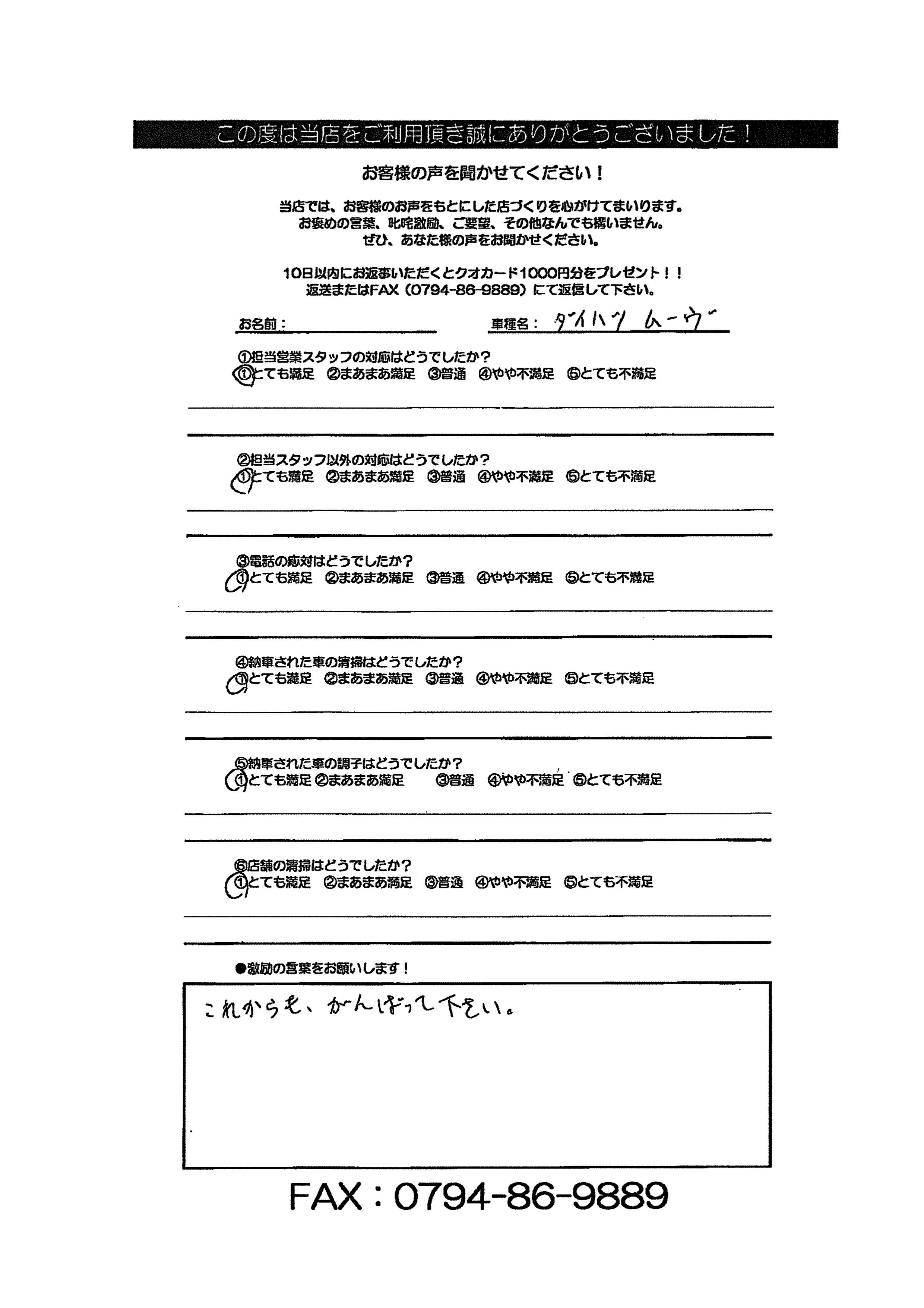 /0 コメント/カテゴリ: ご成約 /作成者: nakamura兵庫県 三木市 H様 ムーヴキャンバス ご成約ありがとうございます! CH0016